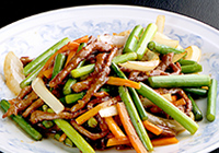 細切り牛肉とニンニクの芽の炒め